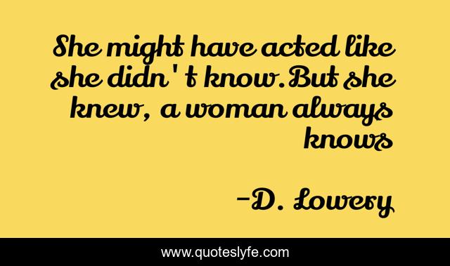 This page presents the quote "She might have acted like she didn't know.But she knew, a woman always knows". Author of this quote is D. Lowery. .