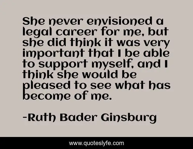 This page presents the quote "She never envisioned a legal career for me, but she did think it was very important that I be able to support myself, and I think she would be pleased to see what has become of me.". Author of this quote is Ruth Bader Ginsburg. This quote is about me, myself, support,.
