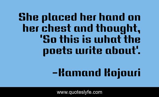 "Kamand Kojouri Quotes." Quoteslyfe.com, 2025. Tue. 09 Dec. 2025. <https://www.quoteslyfe.com/quote/She-placed-her-hand-on-her-chest-81150>.
