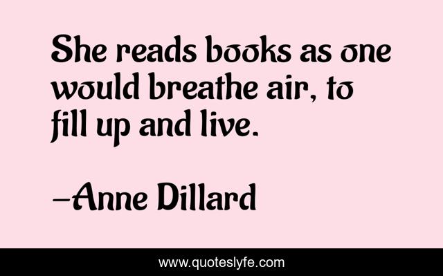 This page presents the quote "She reads books as one would breathe air, to fill up and live.". Author of this quote is Anne Dillard. .
