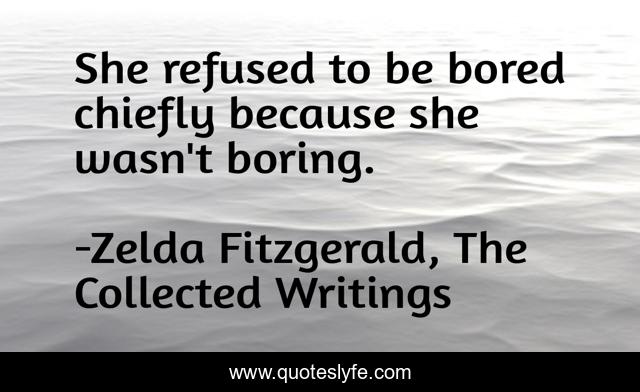 "Zelda Fitzgerald, The Collected Writings Quotes." Quoteslyfe.com, 2025. Sun. 07 Dec. 2025. <https://www.quoteslyfe.com/quote/She-refused-to-be-bored-chiefly-because-255648>.
