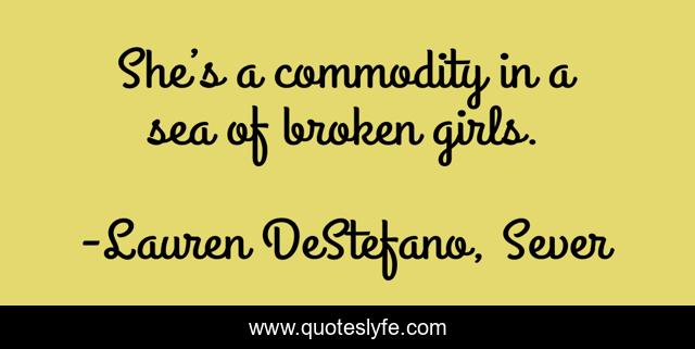 This page presents the quote "She’s a commodity in a sea of broken girls.". Author of this quote is Lauren DeStefano, Sever. This quote is about dark, prostitution, sad,.