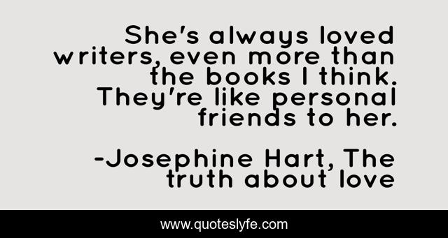 This page presents the quote "She's always loved writers, even more than the books I think. They're like personal friends to her.". Author of this quote is Josephine Hart, The truth about love. This quote is about books, reading, authors,.