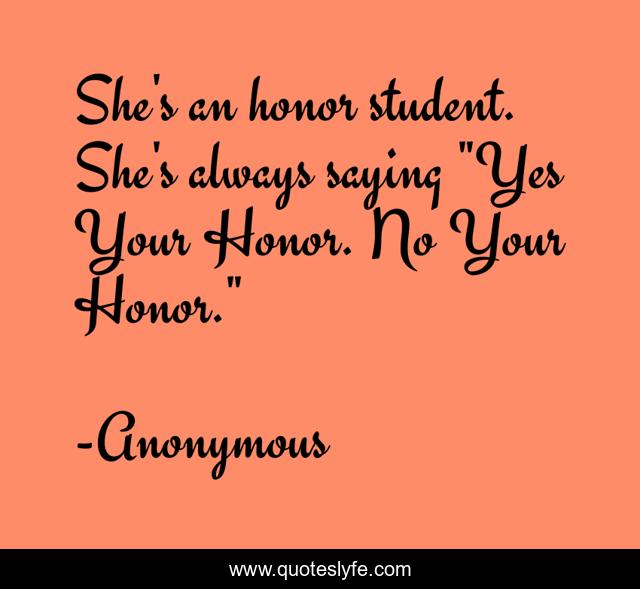 This page presents the quote "She's an honor student. She's always saying "Yes Your Honor. No Your Honor."". Author of this quote is Anonymous. .