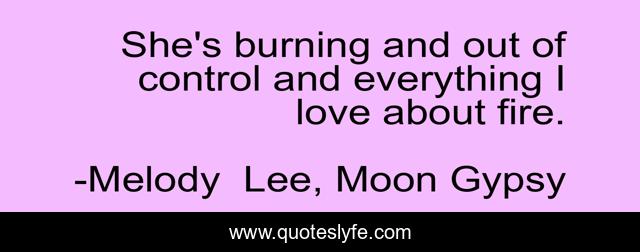 "Melody Lee, Moon Gypsy Quotes." Quoteslyfe.com, 2025. Sun. 07 Dec. 2025. <https://www.quoteslyfe.com/quote/She-s-burning-and-out-of-control-208150>.