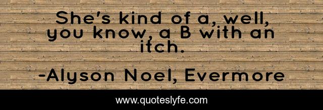 This page presents the quote "She's kind of a, well, you know, a B with an itch.". Author of this quote is Alyson Noel, Evermore. This quote is about teen, vampire,.