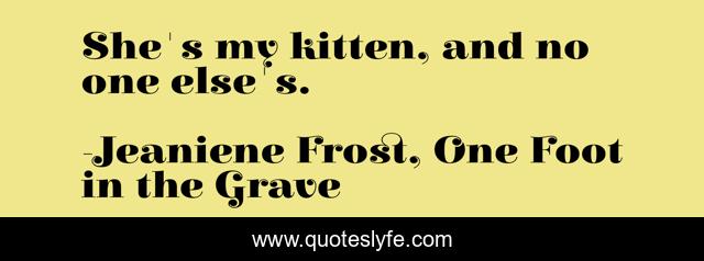 This page presents the quote "She's my kitten, and no one else's.". Author of this quote is Jeaniene Frost, One Foot in the Grave. This quote is about love, vampire, affection,.