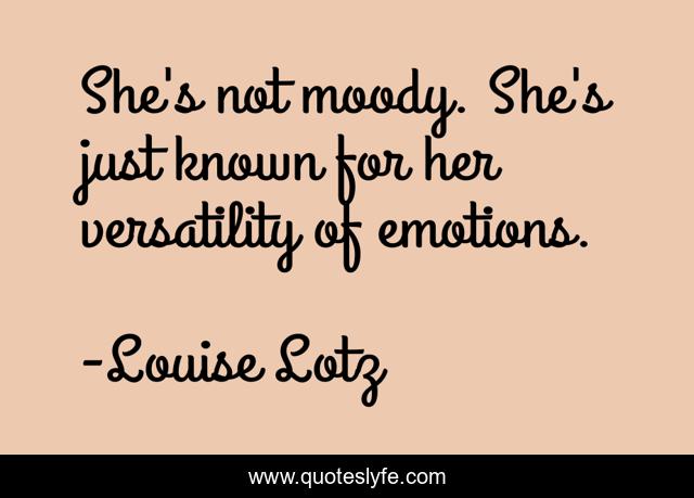 This page presents the quote "She's not moody. She's just known for her versatility of emotions.". Author of this quote is Louise Lotz. This quote is about vices, foibles,.