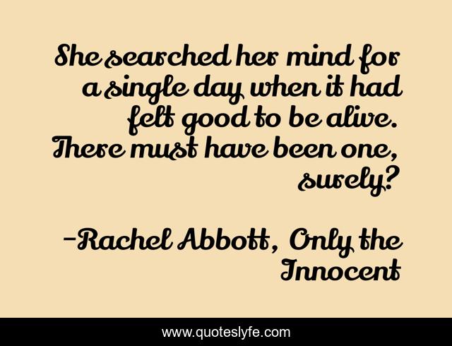 "Rachel Abbott, Only the Innocent Quotes." Quoteslyfe.com, 2025. Sat. 06 Dec. 2025. <https://www.quoteslyfe.com/quote/She-searched-her-mind-for-a-single-124864>.