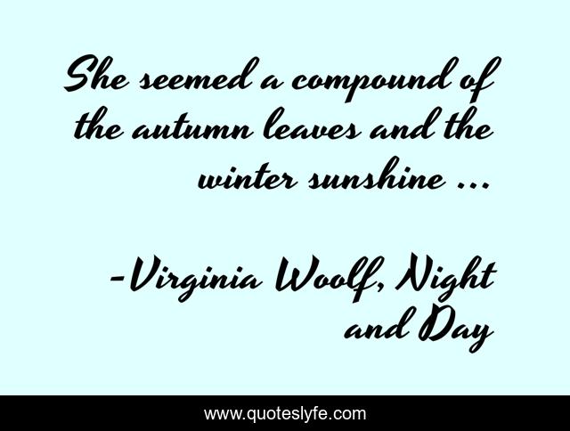 "Virginia Woolf, Night and Day Quotes." Quoteslyfe.com, 2025. Mon. 08 Dec. 2025. <https://www.quoteslyfe.com/quote/She-seemed-a-compound-of-the-autumn-177224>.