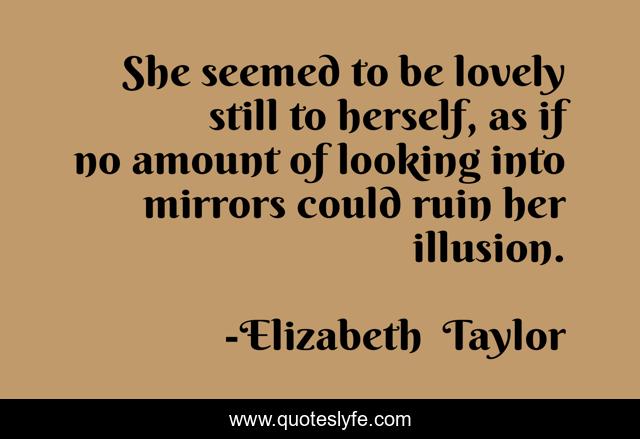 This page presents the quote "She seemed to be lovely still to herself, as if no amount of looking into mirrors could ruin her illusion.". Author of this quote is Elizabeth Taylor. This quote is about a-game-of-hide-and-seek, vanity,.