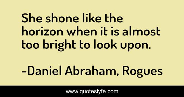 This page presents the quote "She shone like the horizon when it is almost too bright to look upon.". Author of this quote is Daniel Abraham, Rogues. .