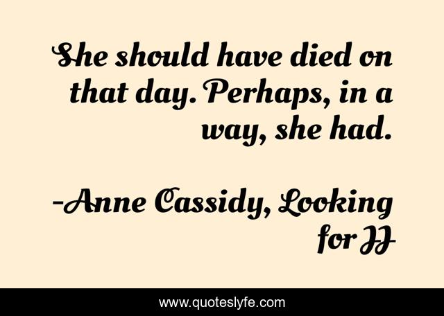 "Anne Cassidy, Looking for JJ Quotes." Quoteslyfe.com, 2025. Fri. 05 Dec. 2025. <https://www.quoteslyfe.com/quote/She-should-have-died-on-that-day-123635>.