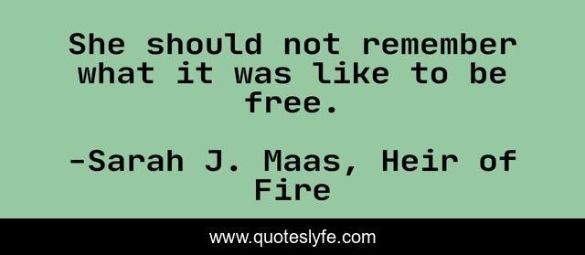 This page presents the quote "She should not remember what it was like to be free.". Author of this quote is Sarah J. Maas, Heir of Fire. This quote is about dark, heir-of-fire,.