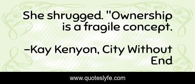 "Kay Kenyon, City Without End Quotes." Quoteslyfe.com, 2025. Sat. 06 Dec. 2025. <https://www.quoteslyfe.com/quote/She-shrugged-Ownership-is-a-fragile-concept-218947>.