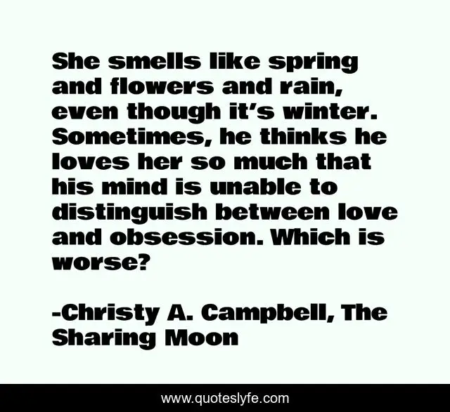 "Christy A. Campbell, The Sharing Moon Quotes." Quoteslyfe.com, 2025. Sat. 06 Dec. 2025. <https://www.quoteslyfe.com/quote/She-smells-like-spring-and-flowers-and-114308>.