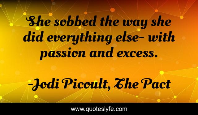 This page presents the quote "She sobbed the way she did everything else- with passion and excess.". Author of this quote is Jodi Picoult, The Pact. This quote is about sobbing, pain, crying,.