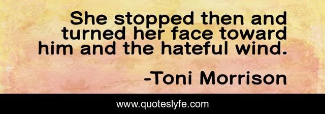 This page presents the quote "She stopped then and turned her face toward him and the hateful wind.". Author of this quote is Toni Morrison. .