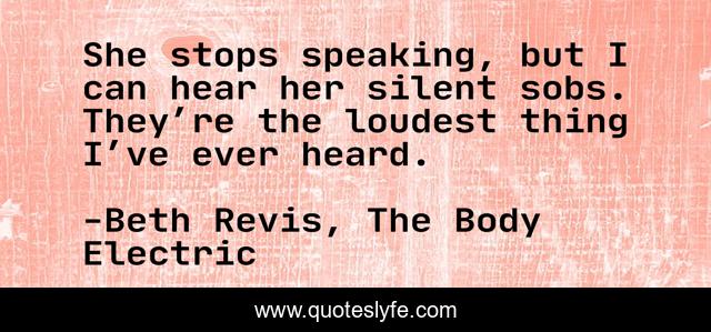 This page presents the quote "She stops speaking, but I can hear her silent sobs. They’re the loudest thing I’ve ever heard.". Author of this quote is Beth Revis, The Body Electric. This quote is about loudest, silent, crying, sobs,.