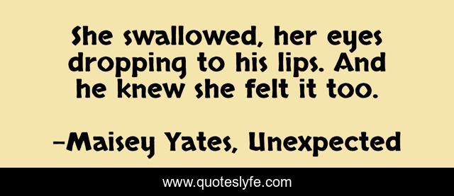 This page presents the quote "She swallowed, her eyes dropping to his lips. And he knew she felt it too.". Author of this quote is Maisey Yates, Unexpected. .