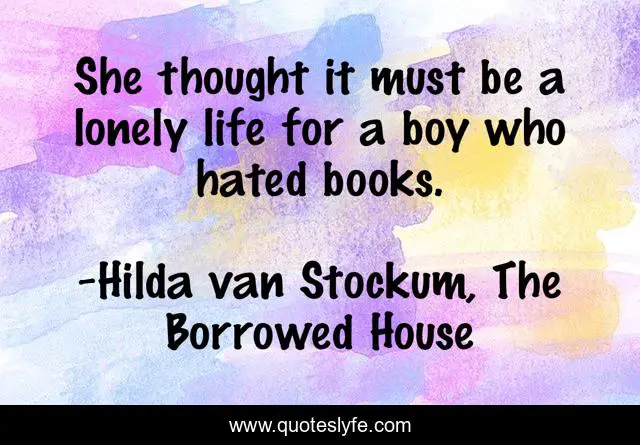This page presents the quote "She thought it must be a lonely life for a boy who hated books.". Author of this quote is Hilda van Stockum, The Borrowed House. This quote is about loneliness, aliteracy, books, reading,.