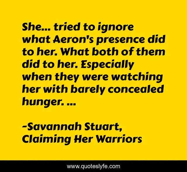 "Savannah Stuart, Claiming Her Warriors Quotes." Quoteslyfe.com, 2025. Fri. 05 Dec. 2025. <https://www.quoteslyfe.com/quote/She-tried-to-ignore-what-Aeron-s-215672>.