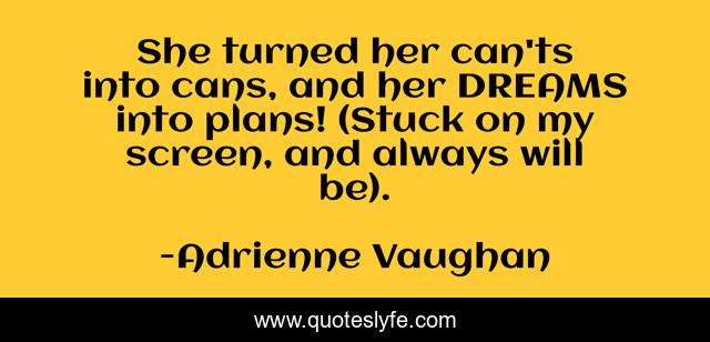 This page presents the quote "She turned her can'ts into cans, and her DREAMS into plans! (Stuck on my screen, and always will be).". Author of this quote is Adrienne Vaughan. .