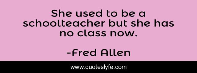 This page presents the quote "She used to be a schoolteacher but she has no class now.". Author of this quote is Fred Allen. This quote is about professions, work,.