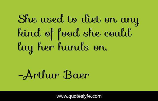 This page presents the quote "She used to diet on any kind of food she could lay her hands on.". Author of this quote is Arthur Baer. This quote is about food, she, hands,.