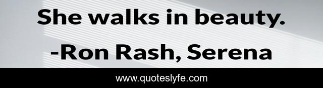 This page presents the quote "She walks in beauty.". Author of this quote is Ron Rash, Serena. This quote is about irony, beauty,.