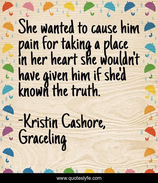 "Kristin Cashore, Graceling Quotes." Quoteslyfe.com, 2025. Mon. 08 Dec. 2025. <https://www.quoteslyfe.com/quote/She-wanted-to-cause-him-pain-for-165920>.