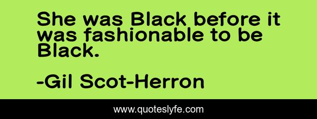 "Gil Scot-Herron Quotes." Quoteslyfe.com, 2025. Sat. 06 Dec. 2025. <https://www.quoteslyfe.com/quote/She-was-Black-before-it-was-fashionable-61151>.
