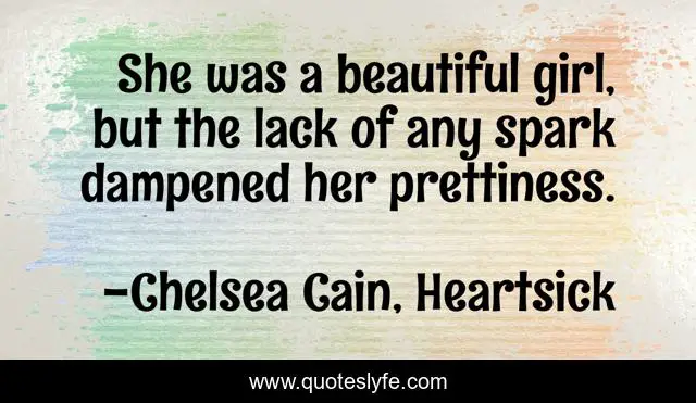This page presents the quote "She was a beautiful girl, but the lack of any spark dampened her prettiness.". Author of this quote is Chelsea Cain, Heartsick. .