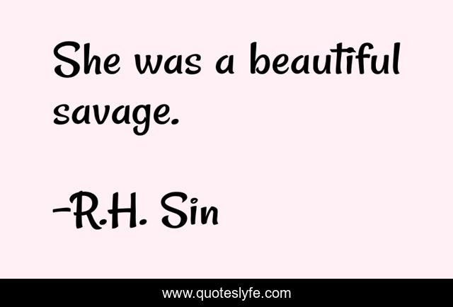 This page presents the quote "She was a beautiful savage.". Author of this quote is R.H. Sin. This quote is about woman, love, strength, truth, affection, women,.