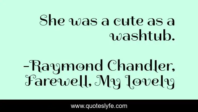 "Raymond Chandler, Farewell, My Lovely Quotes." Quoteslyfe.com, 2025. Mon. 08 Dec. 2025. <https://www.quoteslyfe.com/quote/She-was-a-cute-as-a-washtub-146217>.