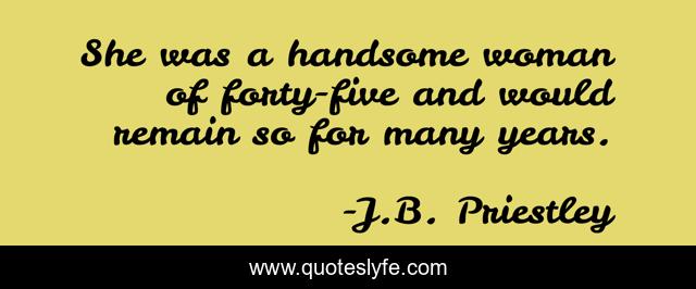 This page presents the quote "She was a handsome woman of forty-five and would remain so for many years.". Author of this quote is J.B. Priestley. This quote is about middle-age, humor, lying, vanity,.