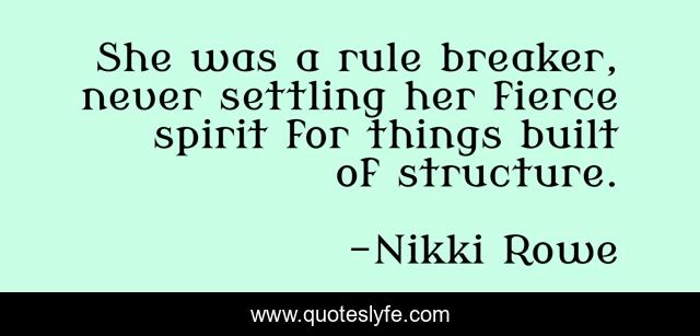 "Nikki Rowe Quotes." Quoteslyfe.com, 2025. Sat. 06 Dec. 2025. <https://www.quoteslyfe.com/quote/She-was-a-rule-breaker-never-settling-59011>.
