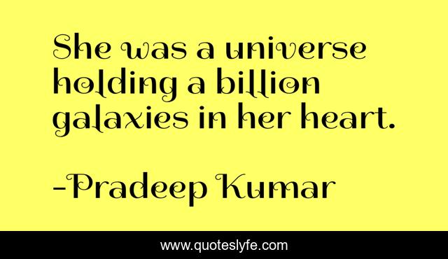 "Pradeep Kumar Quotes." Quoteslyfe.com, 2025. Fri. 05 Dec. 2025. <https://www.quoteslyfe.com/quote/She-was-a-universe-holding-a-billion-169824>.