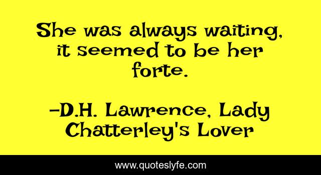 This page presents the quote "She was always waiting, it seemed to be her forte.". Author of this quote is D.H. Lawrence, Lady Chatterley's Lover. .