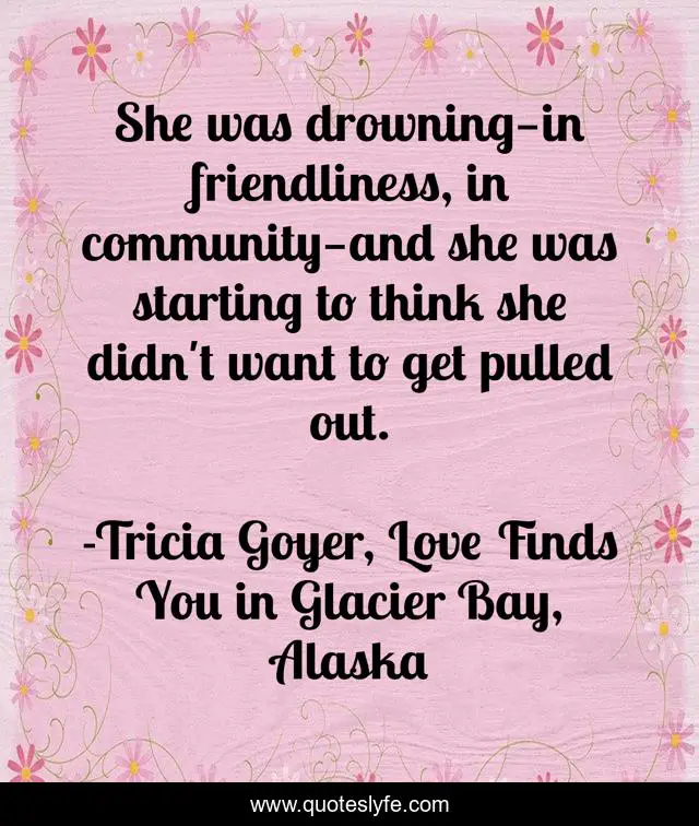 "Tricia Goyer, Love Finds You in Glacier Bay, Alaska Quotes." Quoteslyfe.com, 2025. Fri. 05 Dec. 2025. <https://www.quoteslyfe.com/quote/She-was-drowning-in-friendliness-in-community-220027>.