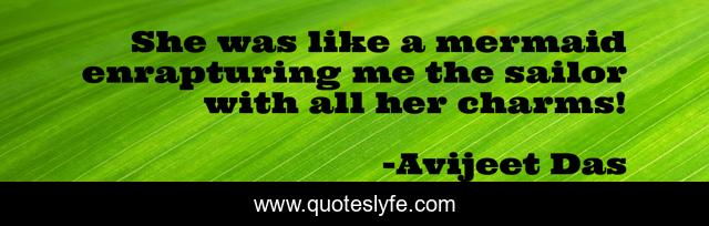 This page presents the quote "She was like a mermaid enrapturing me the sailor with all her charms!". Author of this quote is Avijeet Das. This quote is about life, love, valentines, romance, sailor, writers, charm, mermaid, sea,.