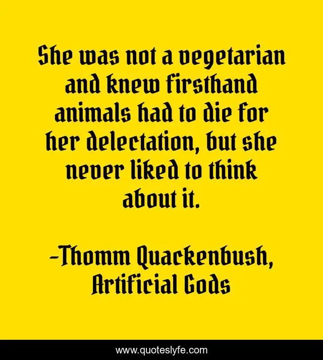 "Thomm Quackenbush, Artificial Gods Quotes." Quoteslyfe.com, 2025. Fri. 05 Dec. 2025. <https://www.quoteslyfe.com/quote/She-was-not-a-vegetarian-and-knew-207418>.