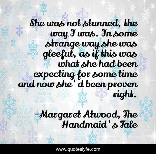 "Margaret Atwood, The Handmaid's Tale Quotes." Quoteslyfe.com, 2025. Fri. 05 Dec. 2025. <https://www.quoteslyfe.com/quote/She-was-not-stunned-the-way-I-101694>.