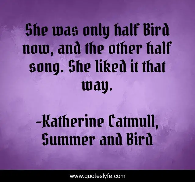 This page presents the quote "She was only half Bird now, and the other half song. She liked it that way.". Author of this quote is Katherine Catmull, Summer and Bird. This quote is about half, bird, song,.