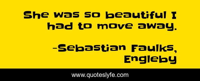 This page presents the quote "She was so beautiful I had to move away.". Author of this quote is Sebastian Faulks, Engleby. .