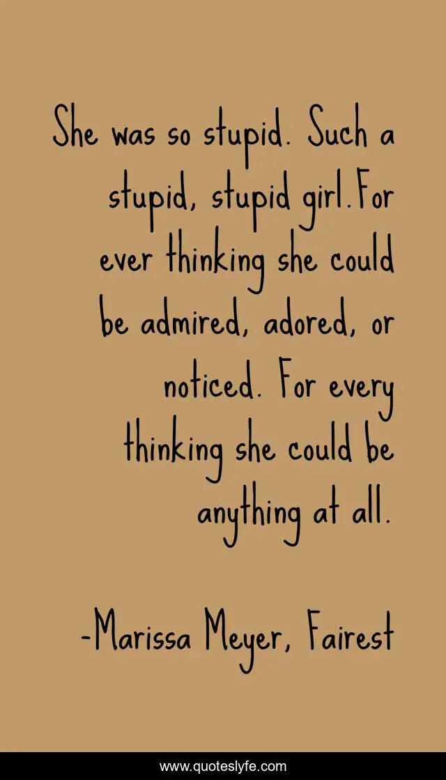 "Marissa Meyer, Fairest Quotes." Quoteslyfe.com, 2025. Sun. 07 Dec. 2025. <https://www.quoteslyfe.com/quote/She-was-so-stupid-Such-a-stupid-142701>.