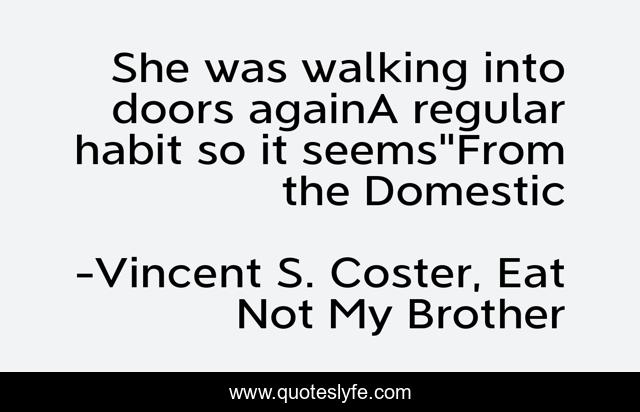 "Vincent S. Coster, Eat Not My Brother Quotes." Quoteslyfe.com, 2025. Fri. 05 Dec. 2025. <https://www.quoteslyfe.com/quote/She-was-walking-into-doors-againA-regular-175228>.