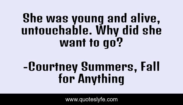 This page presents the quote "She was young and alive, untouchable. Why did she want to go?". Author of this quote is Courtney Summers, Fall for Anything. .
