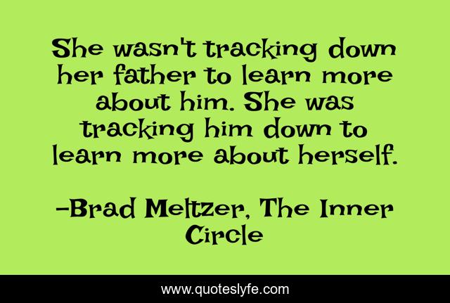 "Brad Meltzer, The Inner Circle Quotes." Quoteslyfe.com, 2025. Mon. 08 Dec. 2025. <https://www.quoteslyfe.com/quote/She-wasn-t-tracking-down-her-father-160433>.