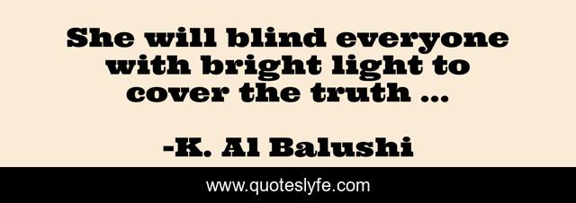 This page presents the quote "She will blind everyone with bright light to cover the truth ...". Author of this quote is K. Al Balushi. .